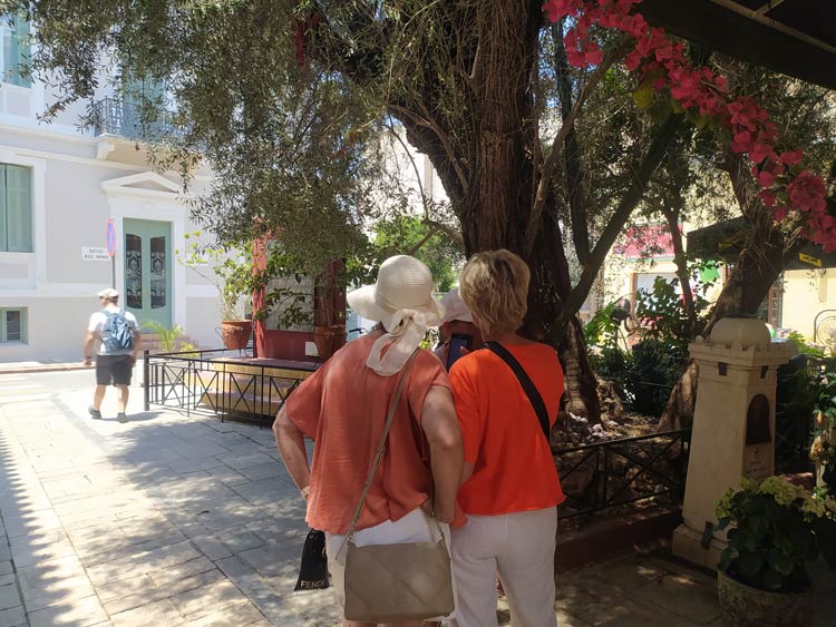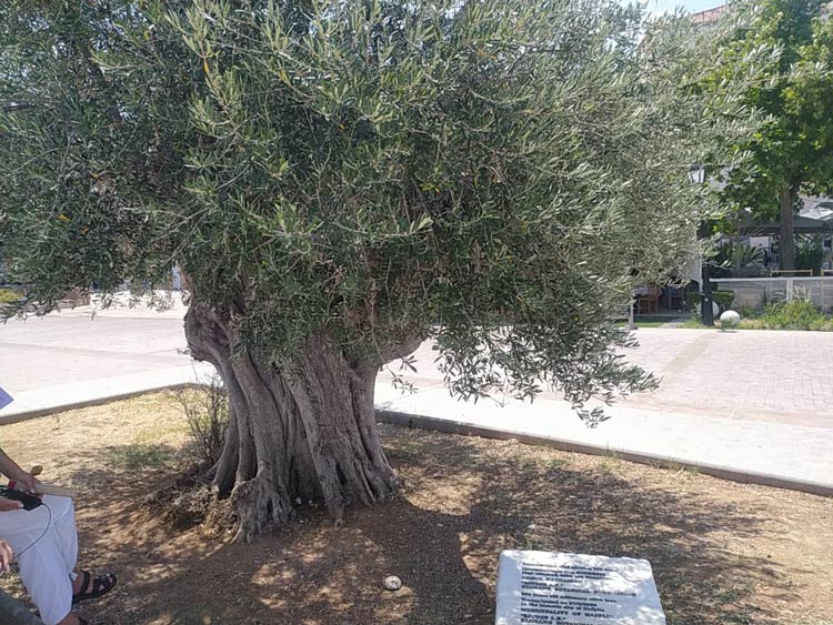 Площадь Филлэлинам, возле древнего оливкового дерева на площади (Filellinon Square, near an ancient olive tree in the square; Πλατεία Φιλελλήνων)
